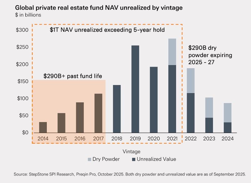 Per StepStone, more than $290B of equity is past its fund life. And pressure to sell will likely pick up as these funds move further beyond their state end dates.